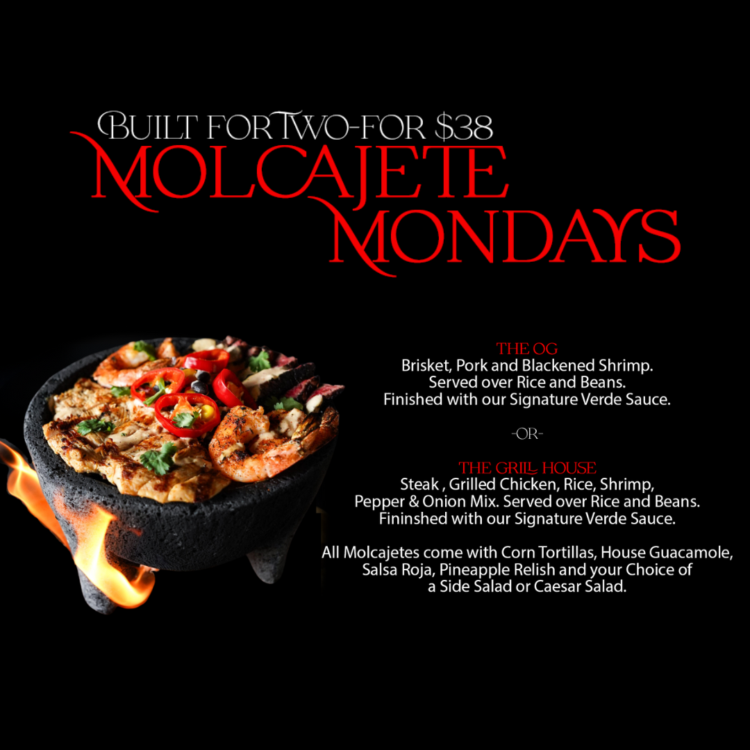 Kick off your week with a Molcajete made for legends. It's literally served on fire as it hits your table.